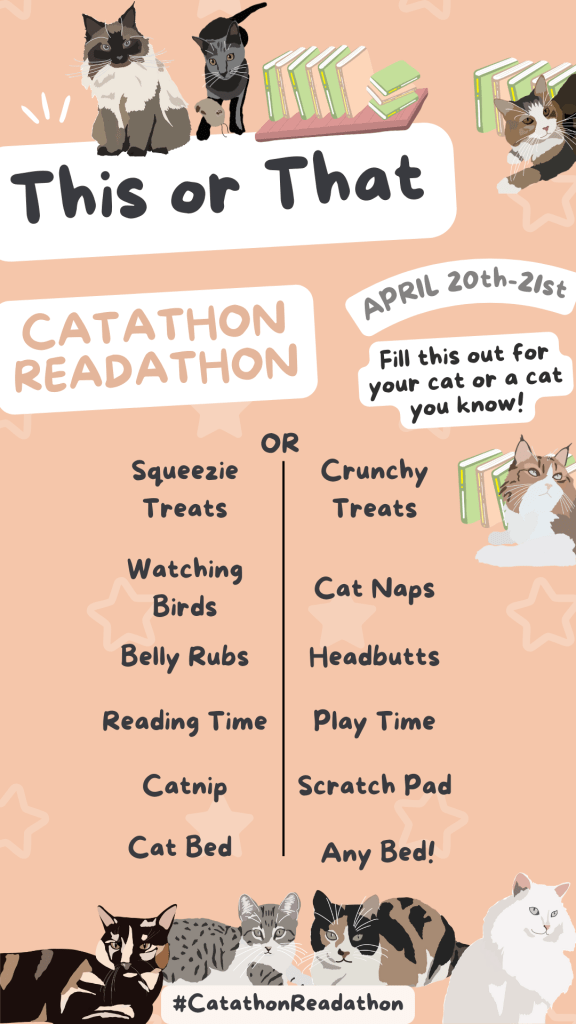 Hi everyone! It is time for Olivia, myself, and our cohosts to announce our second Catathon Readathon! It’s our 48 hr Readathon dedicated to what we love most – CATS!